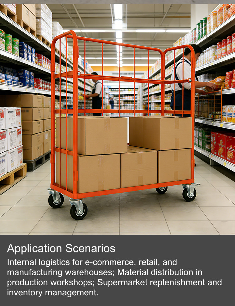 Para los gigantes del comercio electrónico y los centros de distribución minorista, el WL-RC-001-B funciona como un centro de clasificación móvil para el reabastecimiento de supermercados y la reorganización del inventario. Su plataforma extra ancha permite al personal trasladar grandes cantidades de diversas líneas de productos o bolsas logísticas preclasificadas directamente a la tienda, garantizando una rápida reposición de los estantes sin obstaculizar el paso de los clientes.