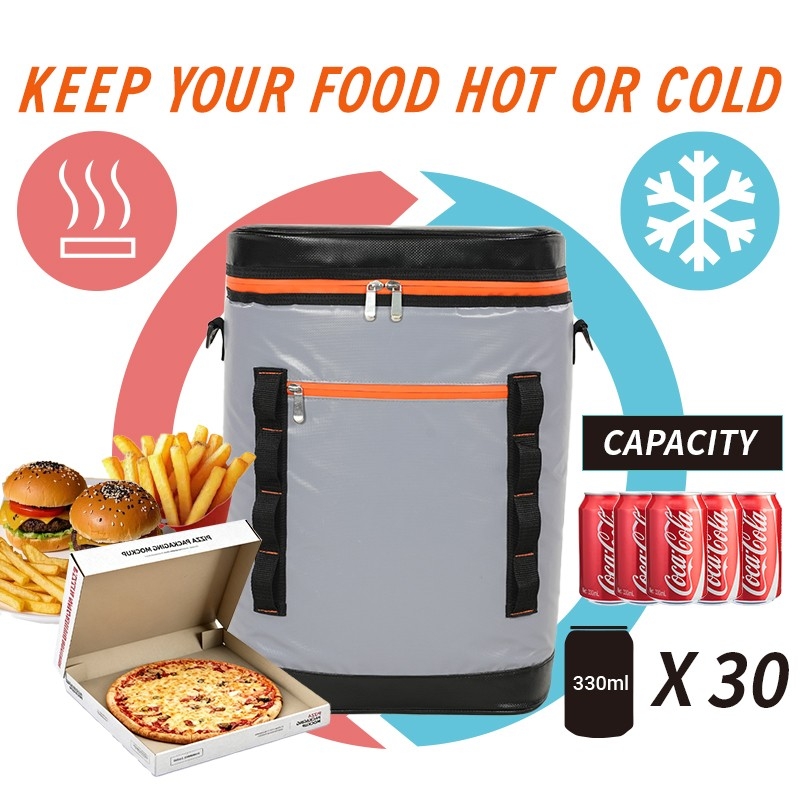 Mochila impermeable de TPU de 31 L con aislamiento y correas dobles para reparto de comida, catering y uso en exteriores. Personalizable con logotipo, color y tamaño. Ideal para pedidos corporativos al por mayor y envíos internacionales rápidos.