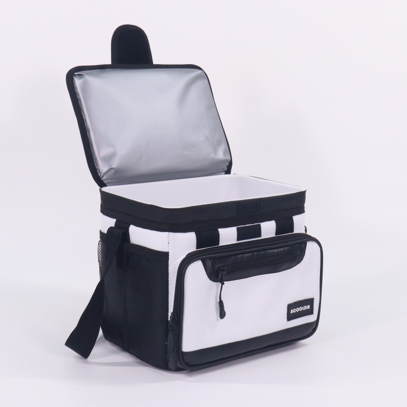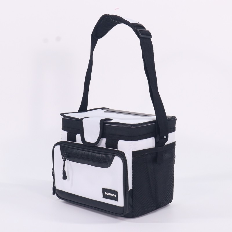 Elegante, fiable y versátil: esta nevera portátil térmica en blanco y negro está diseñada para profesionales que buscan rendimiento sin sacrificar la estética. Su diseño minimalista en dos tonos le da un aspecto limpio y moderno, ideal para reparto de comida, uso de empleados o para publicidad.