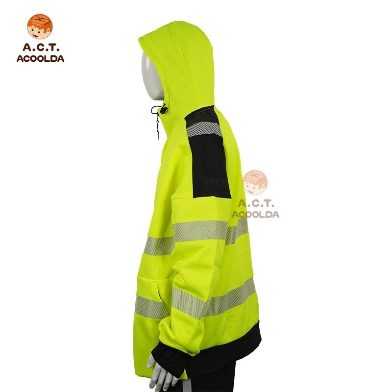 Esta chaqueta reflectante impermeable con capucha es perfecta para repartidores de comida, servicios de mensajería y personal de logística, ya que ofrece protección contra la lluvia y visibilidad en entornos con poca luz. Su diseño con capucha garantiza comodidad y seguridad, lo que la hace práctica para trabajar al aire libre.
